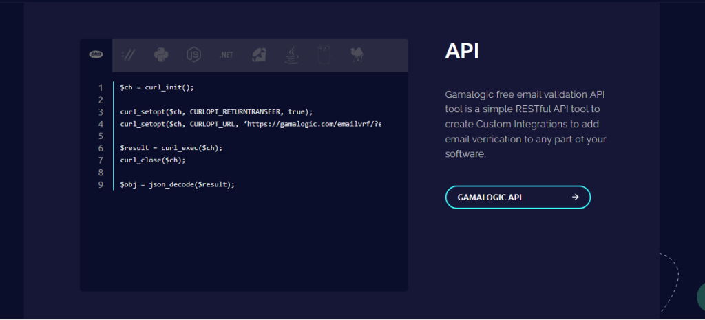 curl_setopt($ch, CURLOPT_URL, ‘https://gamalogic.com/emailvrf/?emailid=your_emailid_here&apikey=your_api_key_here’);