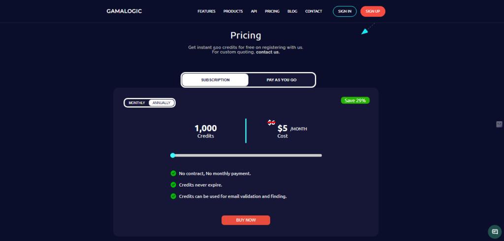 Gamalogic starts with 500 free credits — perfect for testing both single and bulk email validation.